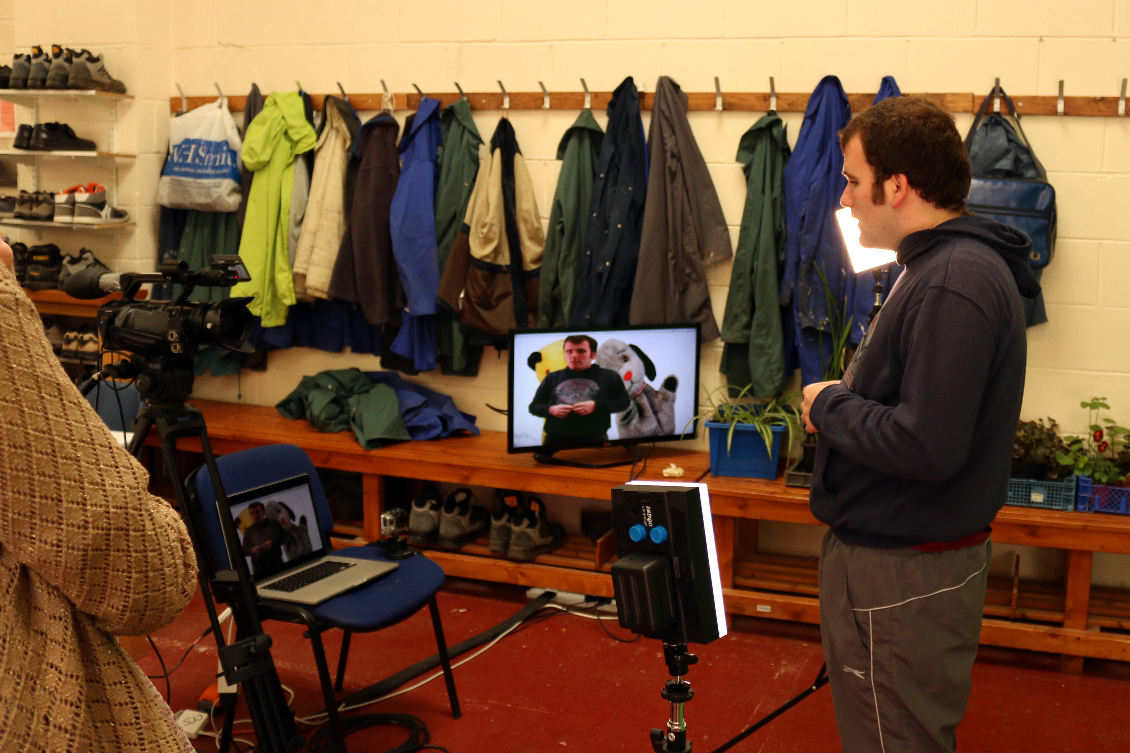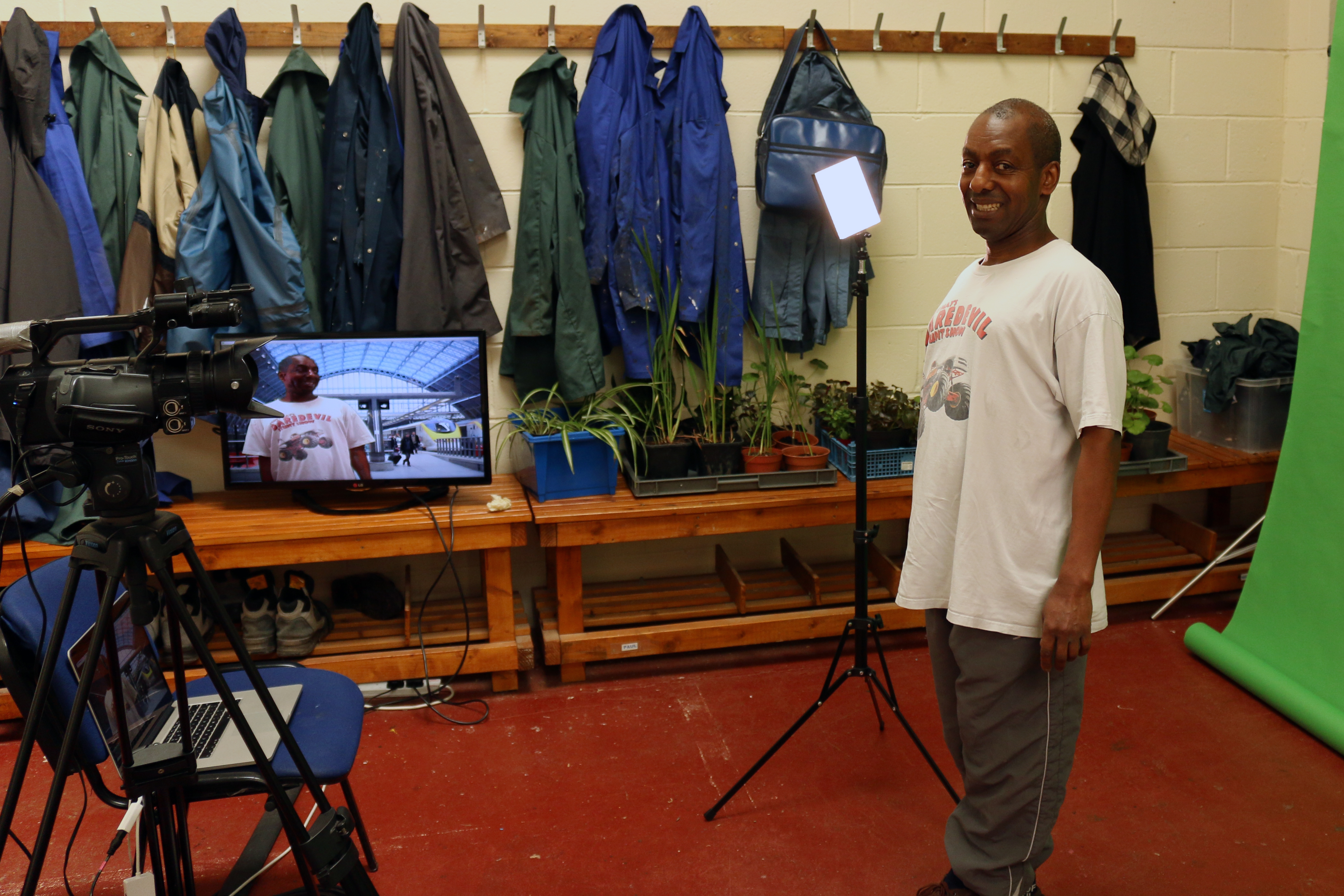We used a green-screen again but this time around we were able to use videos as a backdrop which resulted in a close encounter with a steam train barrelling down the tracks for one of the participants who had a keen interest in trains.